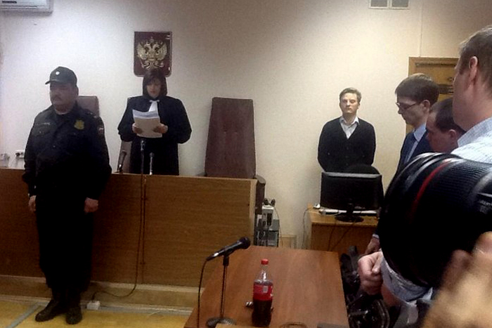 Ни репортеры в зале, ни их коллеги, оставшиеся слушать трансляцию внизу, не могли разобрать речь судьи Елены Коробченко. Первым мешали щелчки фотокамер, вторым — ругань приставов с посетителями суда, которых не пускали на оглашение приговора.