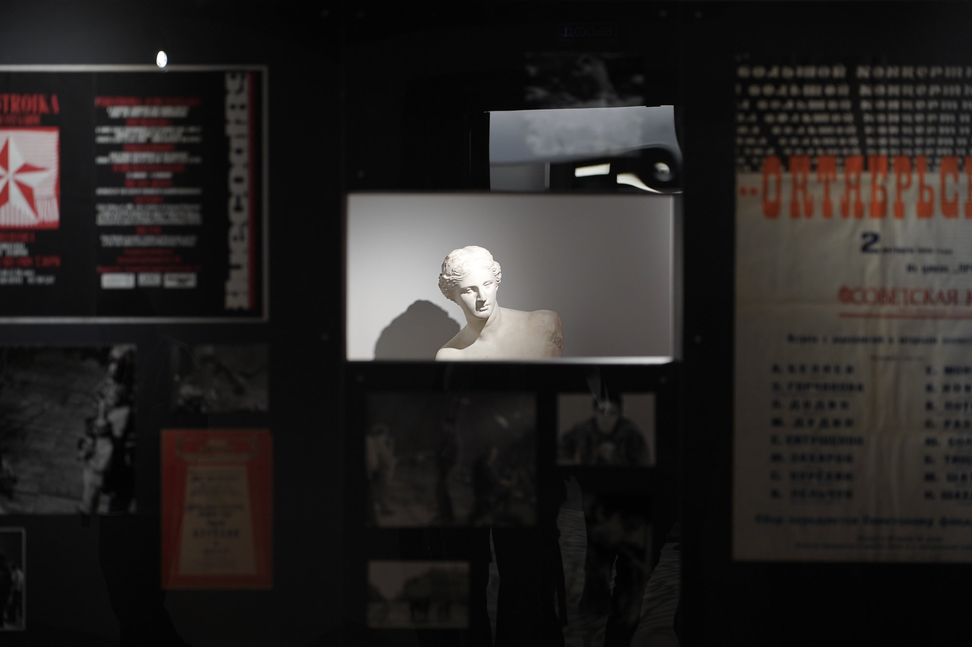 На нулевом этаже уже открыли выставку о перестроечном и постперестроечном искусстве. С картиной Цоя и синим париком художницы Ольги Тобрелутс