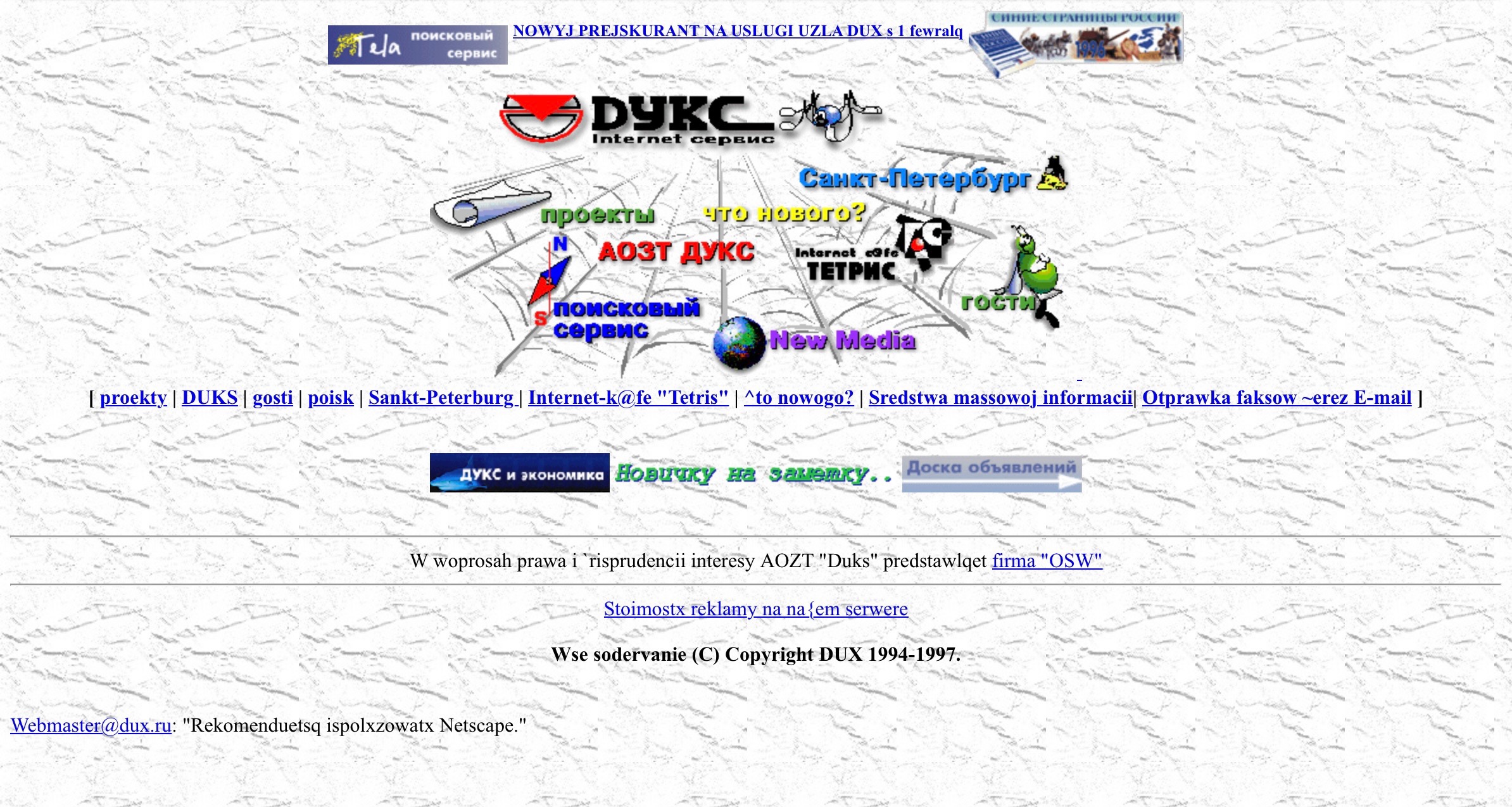 «Это были практически неделимые сущности. „Тетрис“ был и клиентской площадкой, и частью офиса „Дукса“», — вспоминает Инга Цветкова, в 1996-1999 годах работавшая веб-дизайнером в «Дуксе».