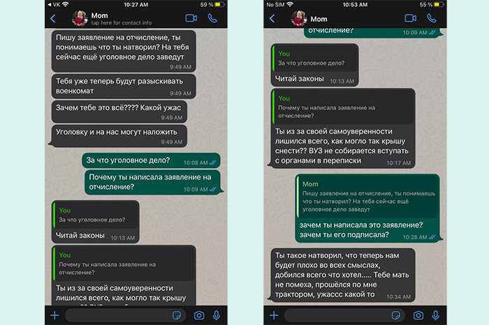 Мама отказалась. Она будто находится на стороне России и сама начала угрожать, чтобы я удалил этот пост. Говорила, что я дурак, ничего не понимаю, сейчас будет плохо всем россиянам.