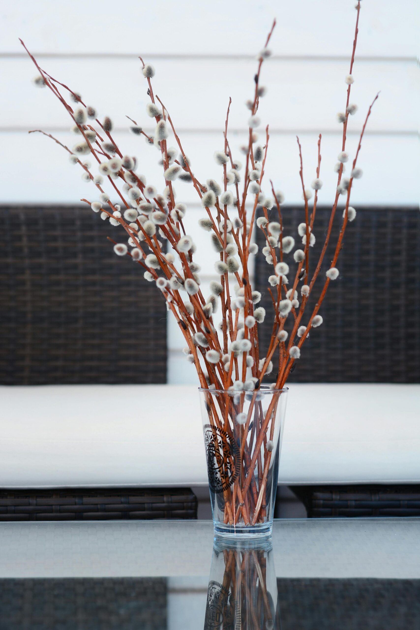 Воду, в которой стоят ветки, рекомендуется менять каждый день, обновляя при этом срез. В идеале следует «расщепить» срез на четыре части. Так вода будет лучше поступать к стеблю. Другой способ — снять кожуру с основания ствола.