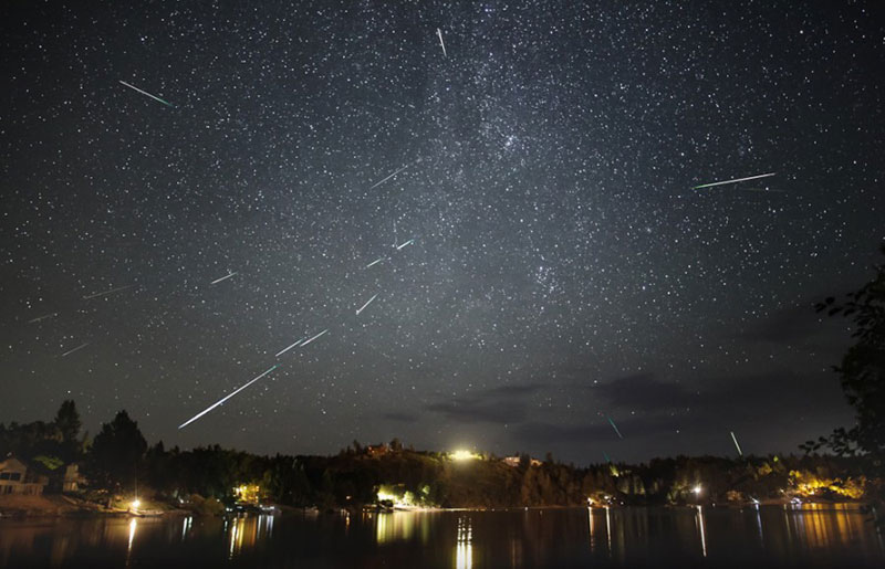 Явление также известно как звездопад. Земля как по расписанию проходит сквозь дорожки кометной пыли. Когда частицы пыли сгорают в атмосфере Земли, получаются метеоры (падающие звезды). Самые яркие потоки наблюдаются в середине августа (Персеиды) и в середине декабря (Геминиды). Условия городской засветки не позволят увидеть звездопад, необходимо уехать за город (не важно куда, главное — подальше от фонарей, 60 километров от города будет достаточно).