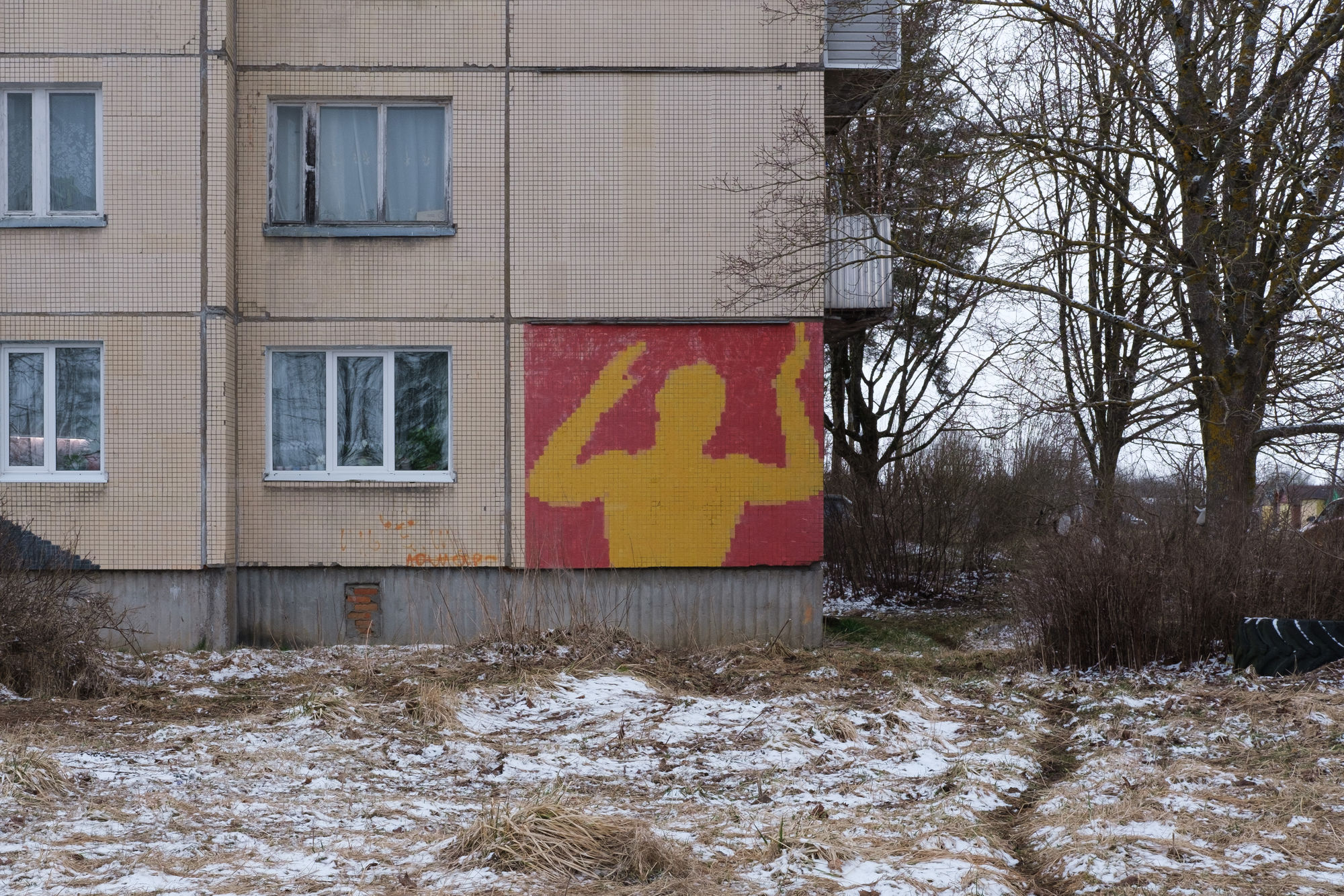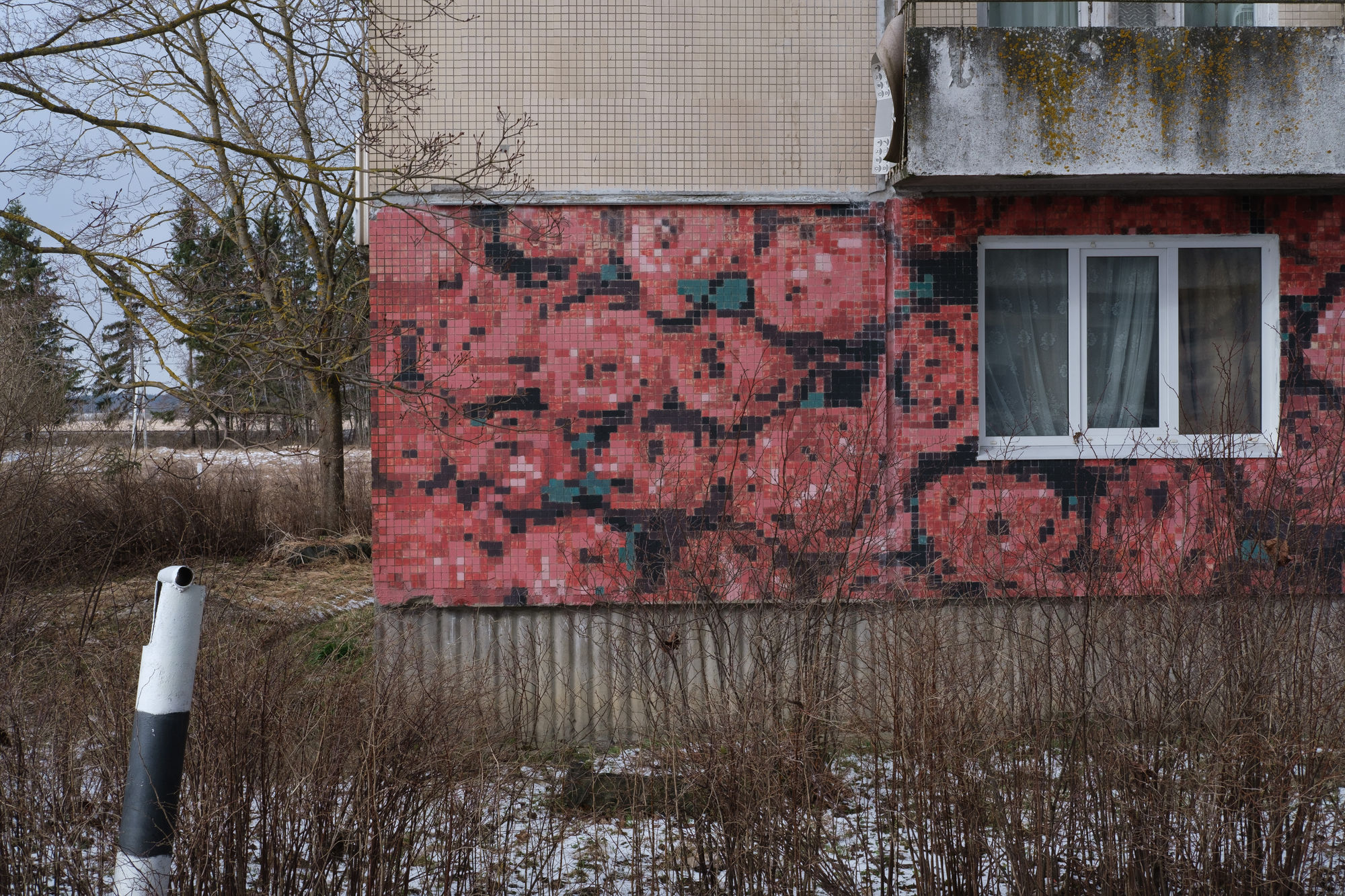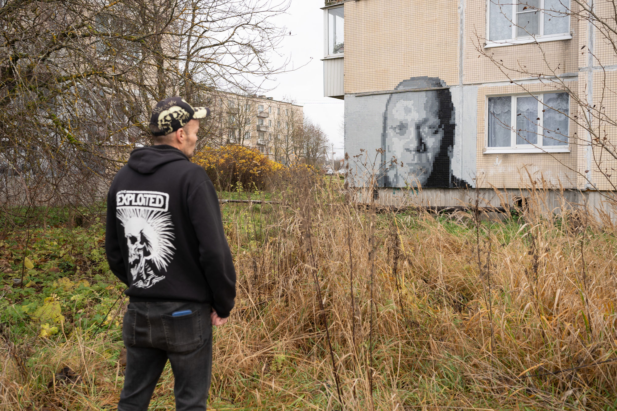 — Я вырос в Елизаветино в Гатчинском районе, где до сих пор живет моя мама. Там все дома — панельные хрущевки с облицовкой в форме клеточных плит. Эти плиты и стали моим полотном для пиксельного рисования.