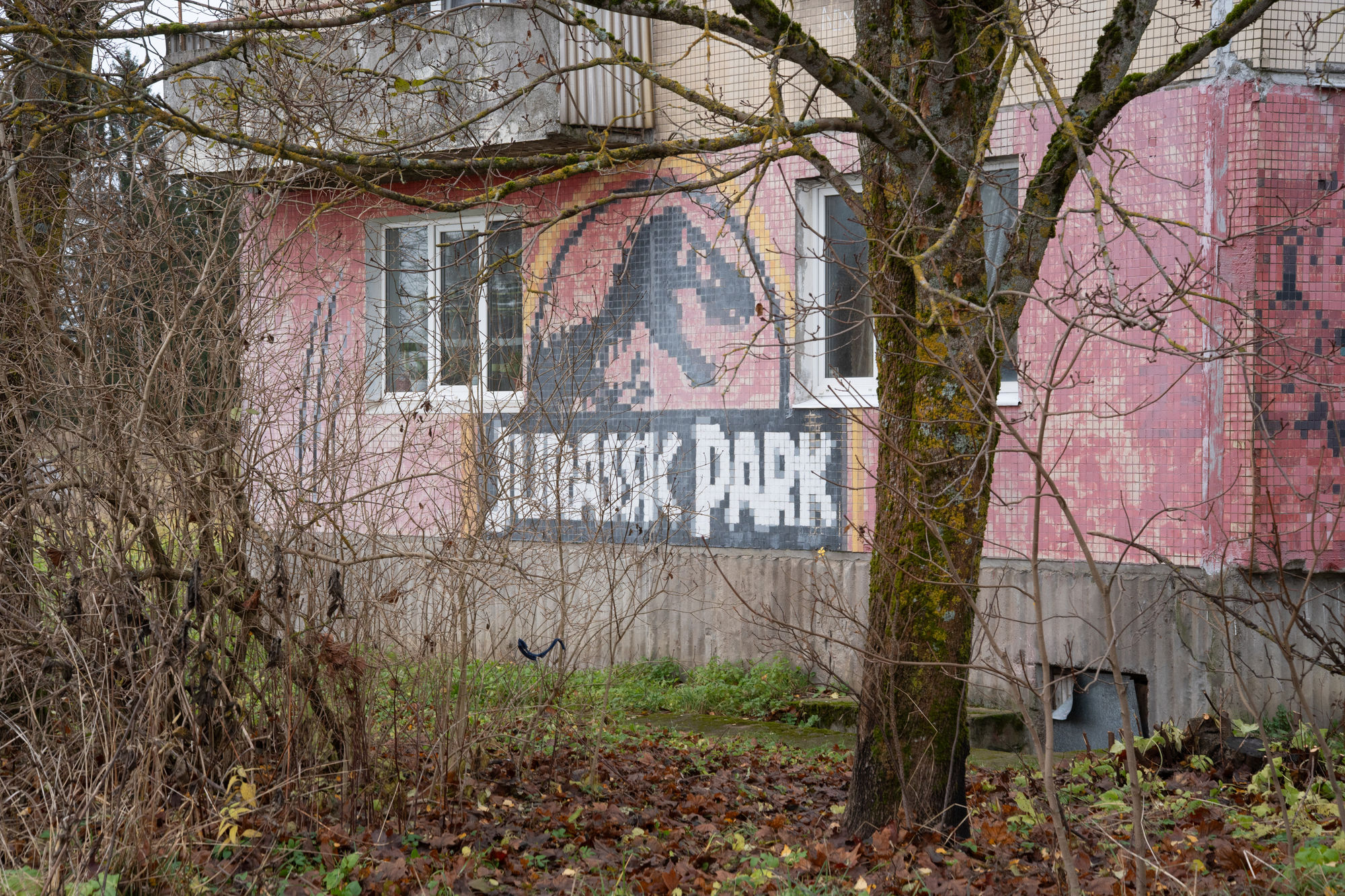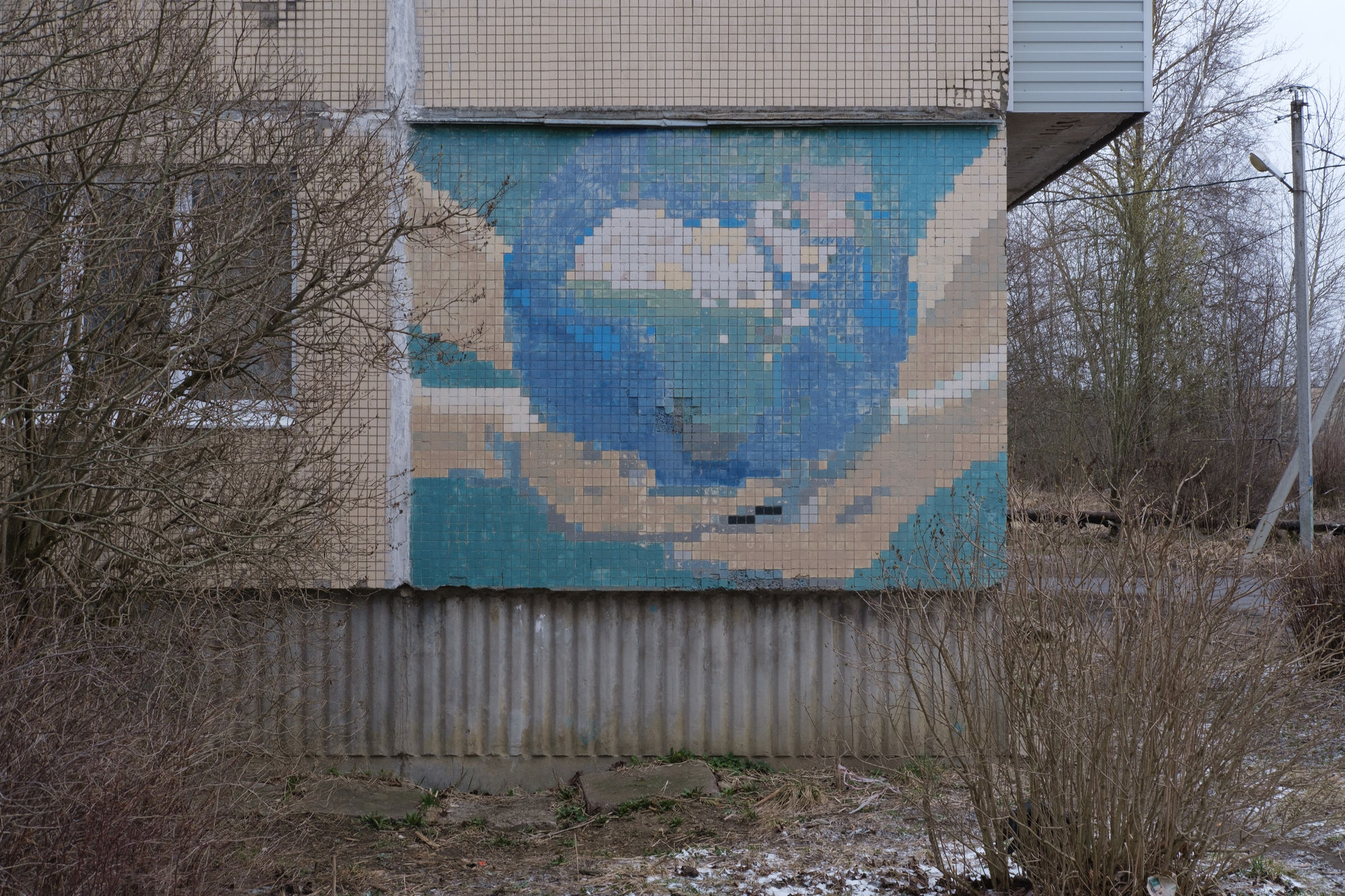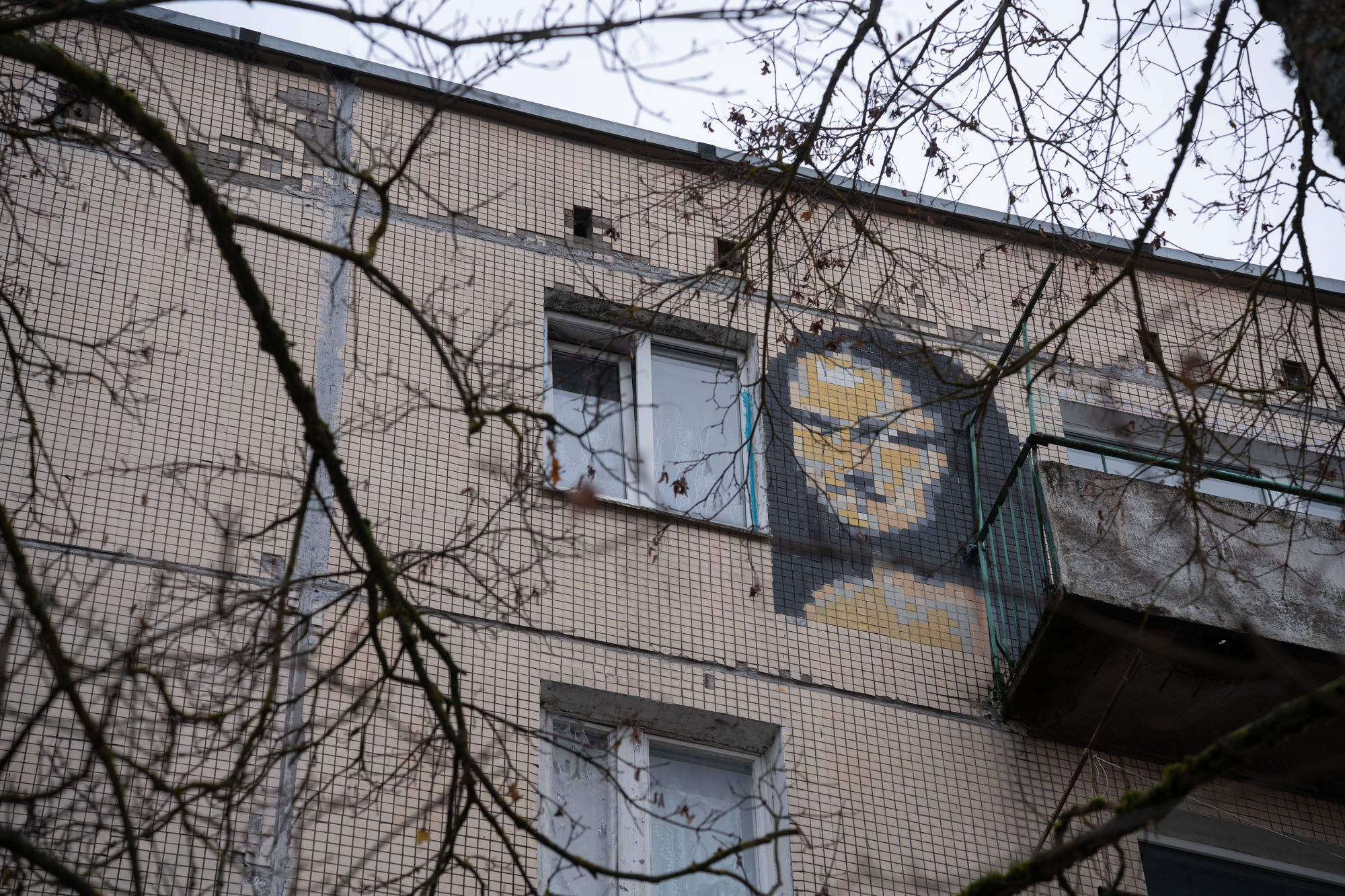 На панельках в Елизаветино — пиксельные портреты Кобейна, Горшка, Хоя и других легенд. Это работы Андрея Гвоздя — бывшего трубочиста Эрмитажа (и панка)