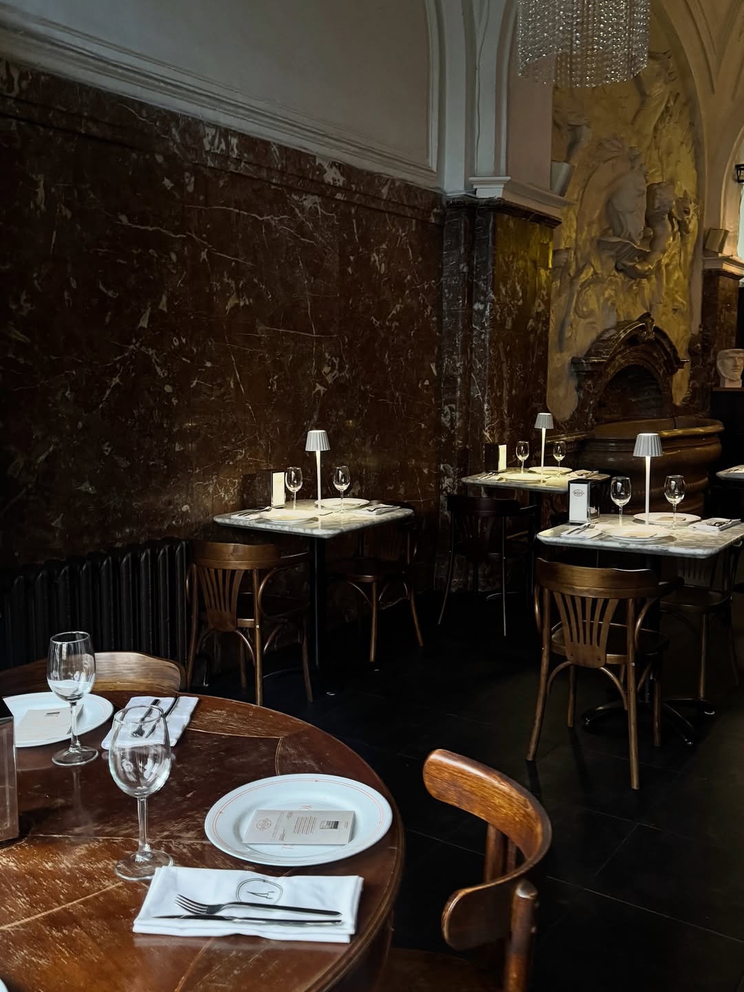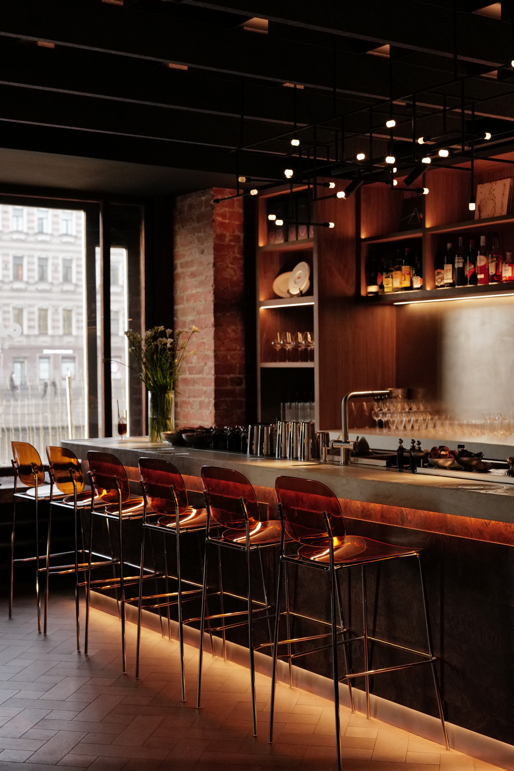 Артем Балаев — известный петербургский гастрономический продюсер, создатель «Кабаре Шум», пирожковых «Минутка» и нескольких городских фестивалей. Новый проект предприниматель открыл в холле киностудии «Лендок», а интерьером занималась Ольга Волдайкина, создательница ресторанов «Казбеги» и Le Courage. В помещении с фонтаном и колоннами выставили винтажную мебель — например, столы, вывезенные из ресторана Borsalino, который до недавнего времени работал в отеле «Англетер».