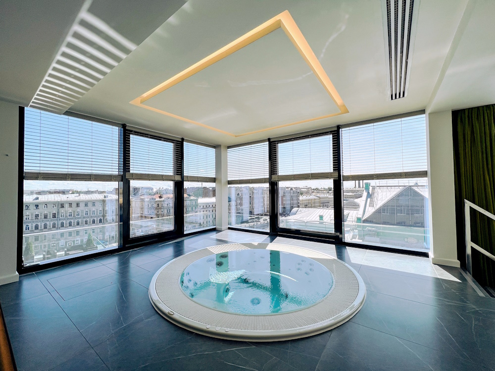 Спа-пространство на крыше центра «Лениздат» открыли для широкой публики этой осенью: с террасы и из зоны джакузи открывается панорамный вид на центр города, а погреться гости могут в парной или турецком хаммаме. Спа-сеансы с коллективным парением, чайным ритуалом и индивидуальными программами длятся 2,5 часа, цена — от 5 тысяч рублей.