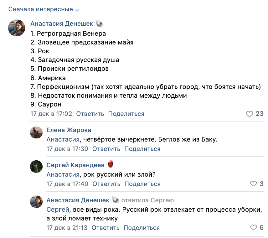 Больше всего реакций собрал список из девяти причин медленной уборки снега. Автор винит Америку, рептилоидов и майя. Возможно, в декабре 2021 года были задействованы все они.