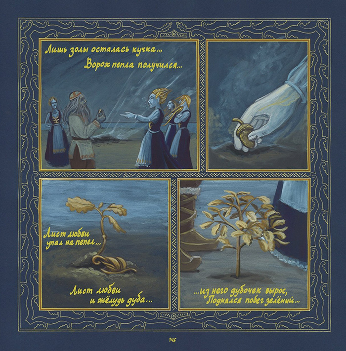 АВ: Перевод было очень интересно искать, потому что он зачастую разбросан по «Калевале», а иногда его там и вовсе нет. Тогда я лично подходила к Инкери и спрашивала: «Что значит это слово? Его нигде нет». Зачастую она отвечала, что точно не уверене, но, кажется, оно значит то-то. Поэтому у нас во многих местах присутствует интерпретация.